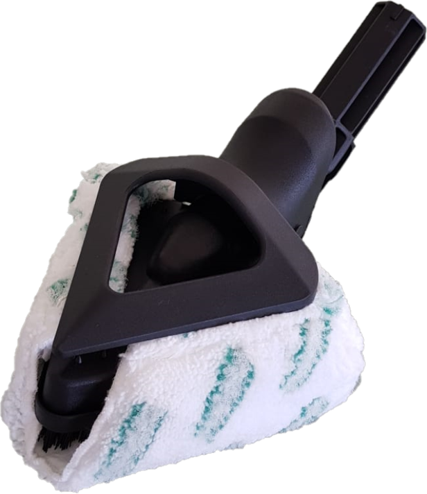 Whenever you want things to be done thoroughly, grab the large triangular brush. With its bristles made of nylon, you can scrub stone floors or other hard surfaces in the house and garden very well. But with a steam buffer and attachment made of microfibre or polyamide, the triangular brush is also perfect for sensitive surfaces or windows.